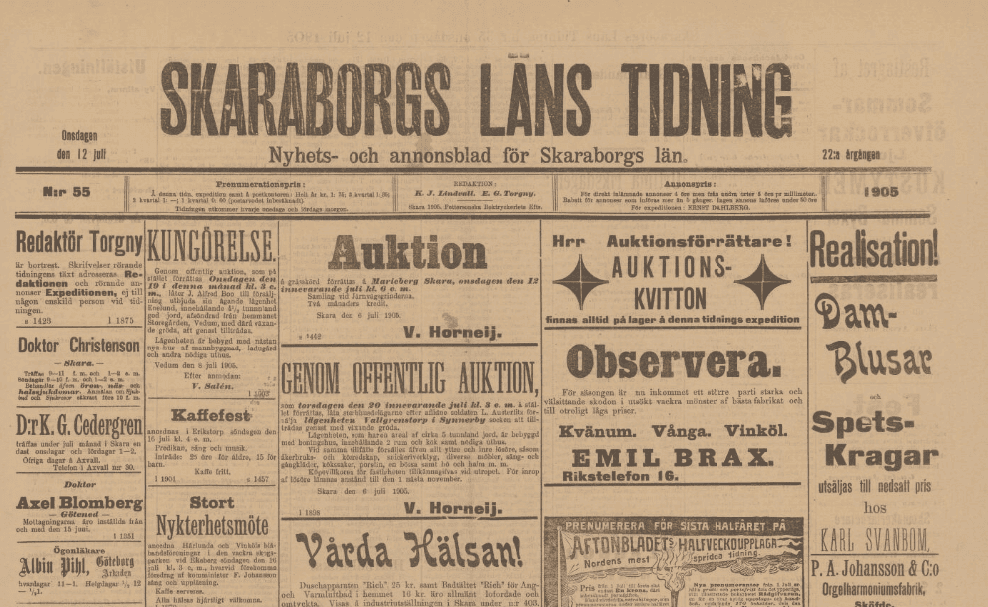 Avisen fungerte som en lokalavis for Skara og det tidligere Skaraborg län, med omland. I dag bor det rundt 300.000 mennesker i det geografiske området som også huset mange som utvandret til Norge under den store arbeidsinnvandringen, som fant sted fra Sverige til Norge i siste halvdel av 1800-tallet og tidlig på 1900-tallet.